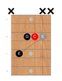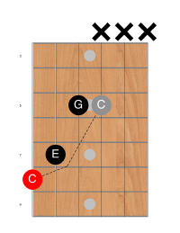 An excellent way to learn these additional shapes is using what Josh at Fretboard Anatomy calls “Octave Drop Chord Building.” Basically, we use familiar octave shapes to drop the highest pitched note in a triad shape we already know one octave (and three strings) lower.